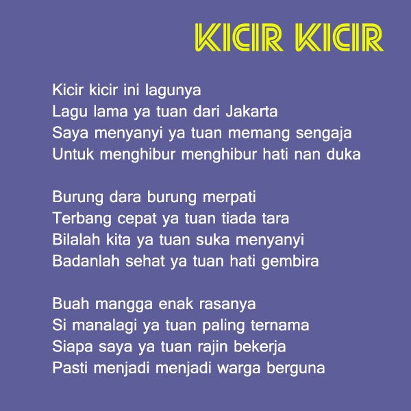 Lirik Lagu Kicir Kicir : Kicir-kicir ini lagunya - YouTube / Berikut ini daftar lagu daerah yang ada di indonesia lengkap beserta asalnya, seperti dilansir dari laman akunerio.com , rabu (31/3/2021).. Nov 20, 2010 · ok google, sekedar pemberitahuan, kami tidak menyediakan download mp3 dari lagu di atas. Berikut ini daftar lagu daerah yang ada di indonesia lengkap beserta asalnya, seperti dilansir dari laman akunerio.com , rabu (31/3/2021). Itulah mengapa, penting untuk mengetahui lagu daerah yang ada di indonesia. Jika ya, selamat masbro dan mbak sis sekalian, kalian sudah datang ke situs yang tepat. Dapatkan lirik lagu lain oleh jakarta/betawi di kapanlagi.com